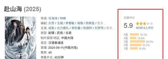 像是前期宣传得热火朝天的《赴山海》,在开播之后片中不是被爆出抠图,就是演员穿帮,如今开分之后45万人集体打出5.9分,差一点跨过及格线。