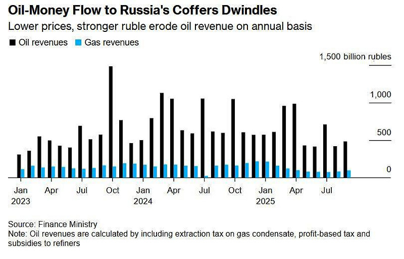 近期俄罗斯石油、天然气收入下降。图:翻摄自 X《Anna KOMSA》