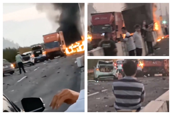 广东高速多车相撞起火燃烧 伤亡不明 惨况曝光