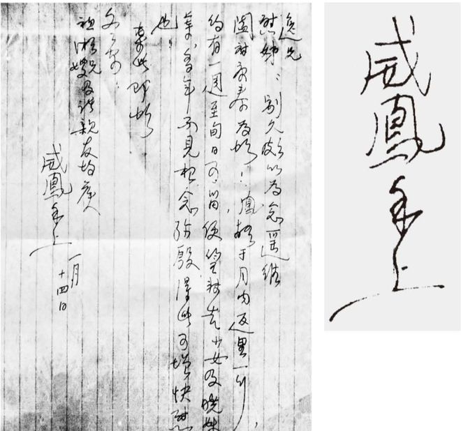 别久颇以为念,遥维 阖府康泰为颂!凤将于月内返里一行,约有一周至旬日可留,便望转告小女及晓妹等,多年不见想念弥殷,得此可增快慰也!