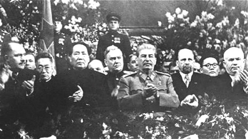1949年毛泽东率团访问苏联,和斯大林合影。(图片来源:网络图片)