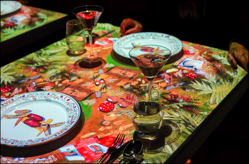 这次体验将围绕小厨师的故事展开,讲述他在春天坠入爱河、组建家庭,以及分享整个季节的喜悦、惊喜和联系,每一章都将通过沉浸式投影映射技术直接呈现在餐桌上。