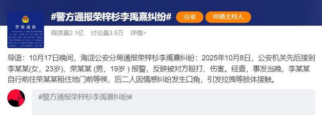 第一瓜:荣梓杉李禹熹被警方通报