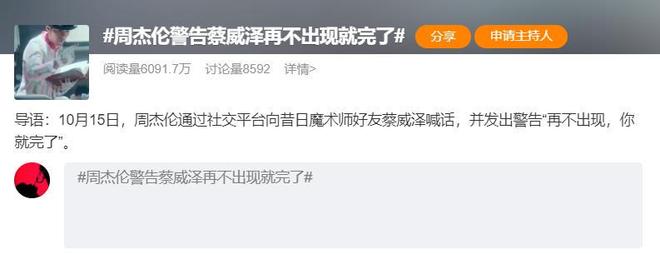 10月17日,周杰伦喊话昔日好友蔡威泽的事情登上了热搜。