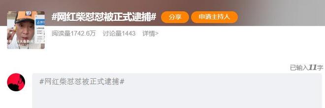 第四瓜,网红柴怼怼被正式逮捕