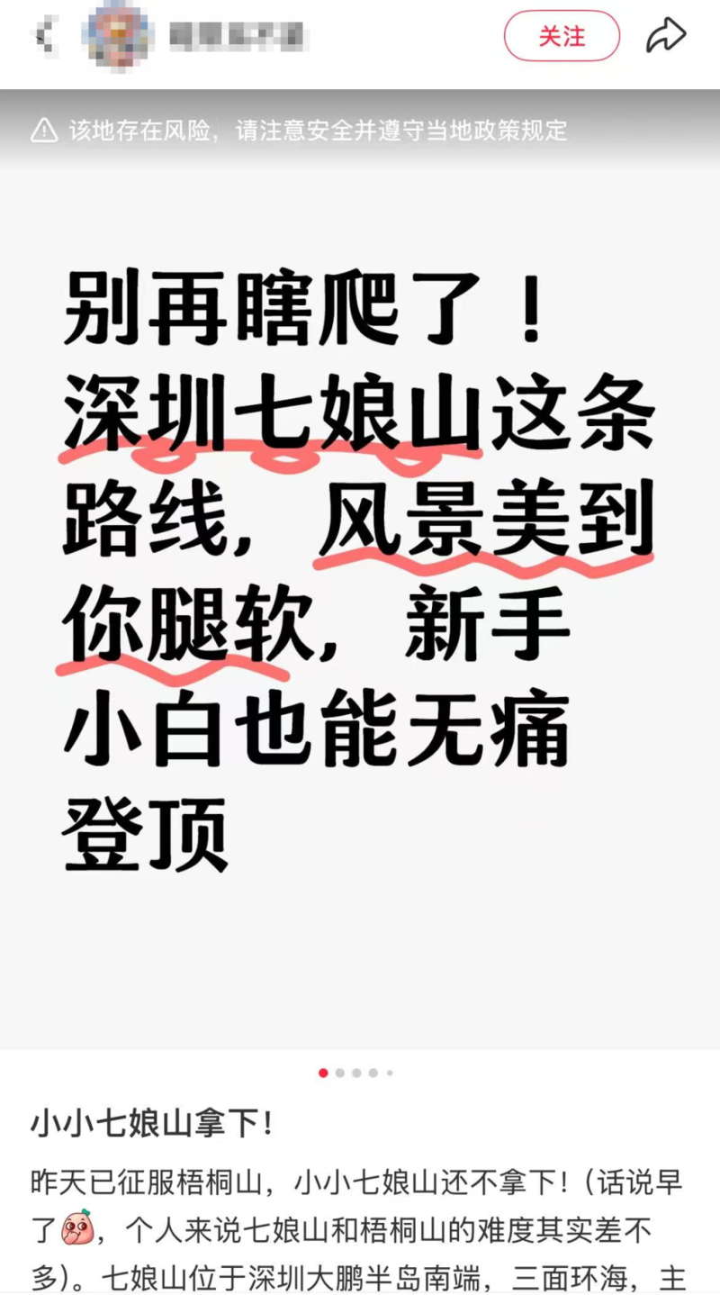 毕竟在社交平台上发出来的都是赞美七娘山风景美丽,点击率高、点赞也多,让人们以为七娘山容易征服。