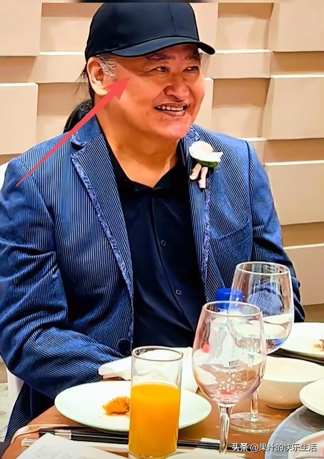 劉歡穿著很不得體。婚禮席上竟然穿休閒不成套布西服,還戴棒球帽!顯然要遮掩頂上,有何見不得人處?!他太太頭上包圍巾當然是為了遮掩禿發!
