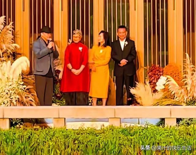 新郎站在丈母娘的身後,和大家敬酒!新郎長相老實又耐看,和劉一絲很般配,祝他們婚後幸福!