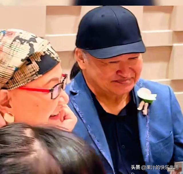劉歡穿著很不得體。婚禮席上竟然穿休閒不成套布西服,還戴棒球帽!顯然要遮掩頂上,有何見不得人處?!他太太頭上包圍巾當然是為了遮掩禿發!