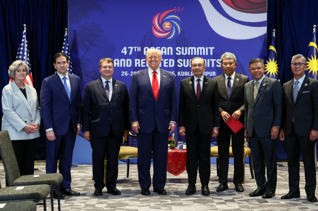 2025年10月26日,吉隆坡,图为特朗普在东盟峰会上与一众东南亚领导人会晤。(Reuters)