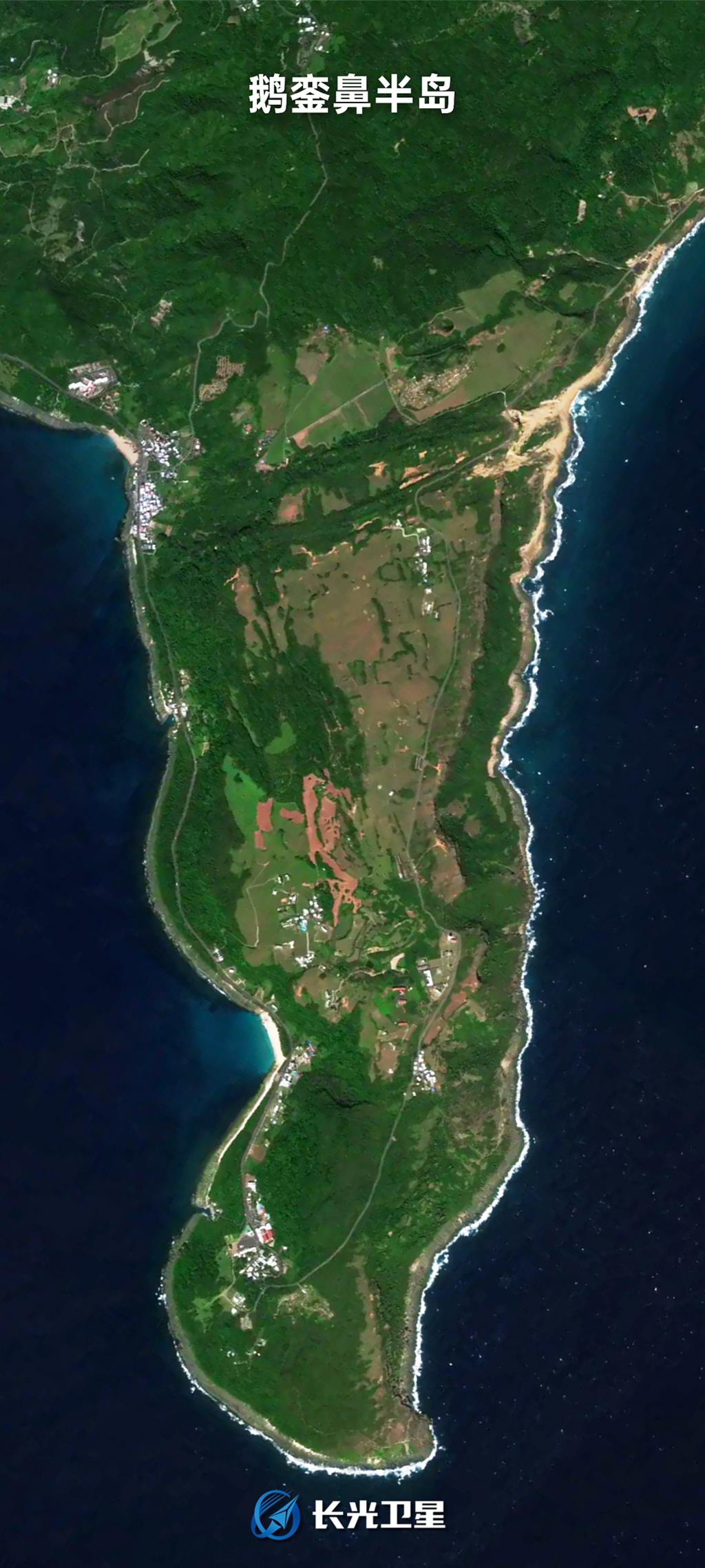 鵝鑾鼻半島如「鼻尖」般探入南海,三面臨海的輪廓格外鮮明,標志性的白色燈塔矗立在半島頂端與周邊嶙峋的珊瑚礁地貌形成對比。太平洋與巴士海峽在此交匯的壯闊景致,成為中國南疆海岸的獨特印記。