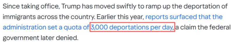 自特朗普(专题)第二任期以来,加大了全国范围内的移民驱逐力度。今年早些时候,有报道称政府曾计划每天驱逐约3,000人,但联邦政府随后予以否认。