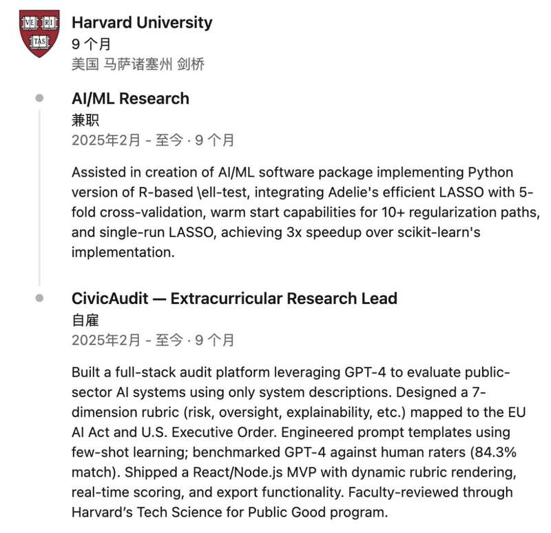入学没多久,她就开始研究机器学习,还用GPT-4搭建了一个全栈审计平台——CivicAudit。