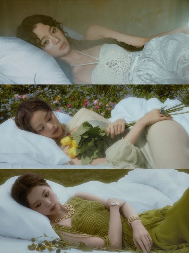 这个被网友称为“绿野仙踪诗意美学”的造型,其实复刻了电影《赎罪》中的经典镜头,同时还有《时时刻刻》中花之生命轨迹,