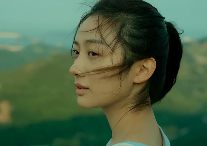 她的五官小巧精致,鼻尖高挺,嘴唇飽滿,一雙眼睛寫滿了故事感,伴隨著山風吹亂的發絲,妥妥的文藝片女神,青春疼痛文學那味兒立馬就出來了。