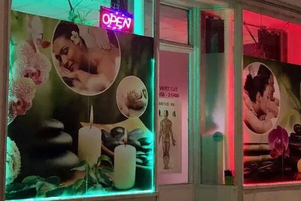 在巴黎第十一区,街角的霓虹灯下,两家泰式按摩店外表看起来平平无奇。