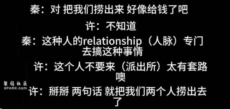 是秦雯的老公王光利联系到了许思窈的朋友,“两句话就把我们捞出去了”,秦雯还透露似乎有人脉专门搞这种事。