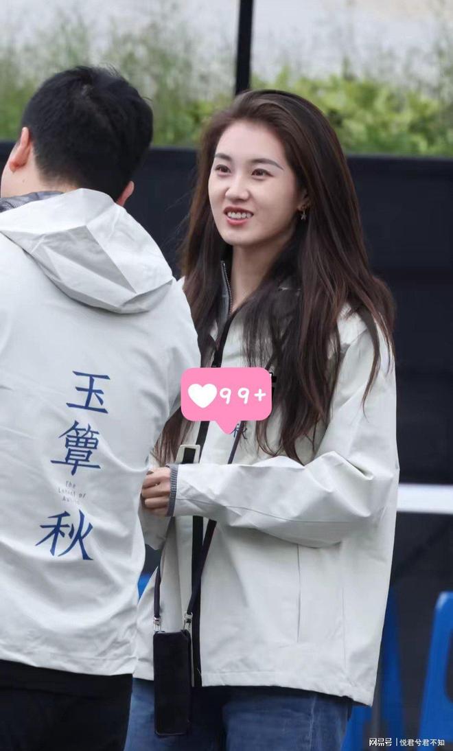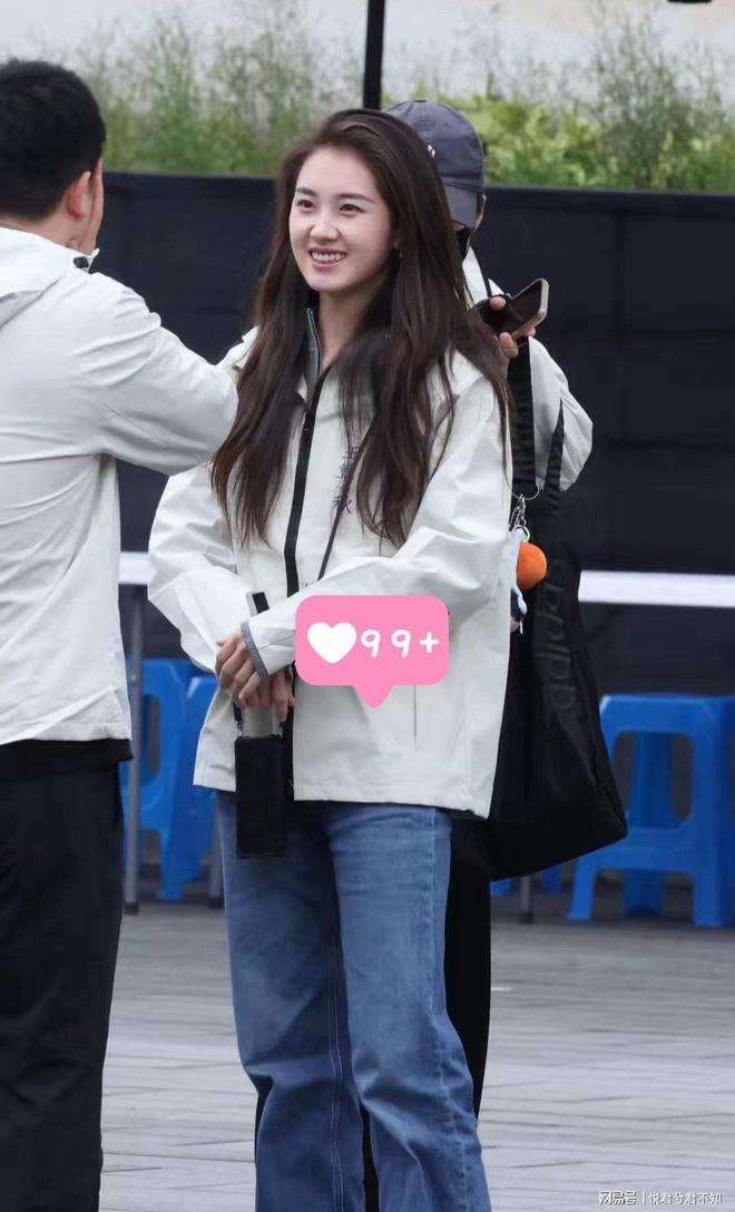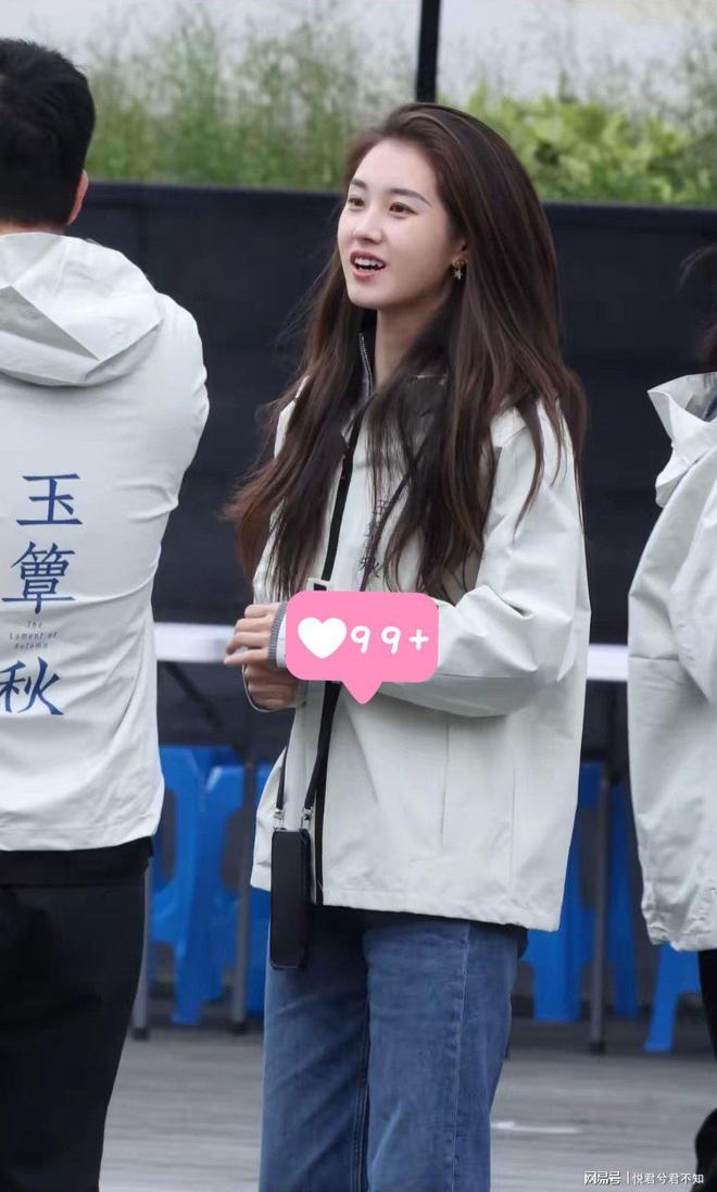 当天她就穿了件最简单的剧组T恤,没化妆,就戴了对小耳饰,可状态好得晃眼。