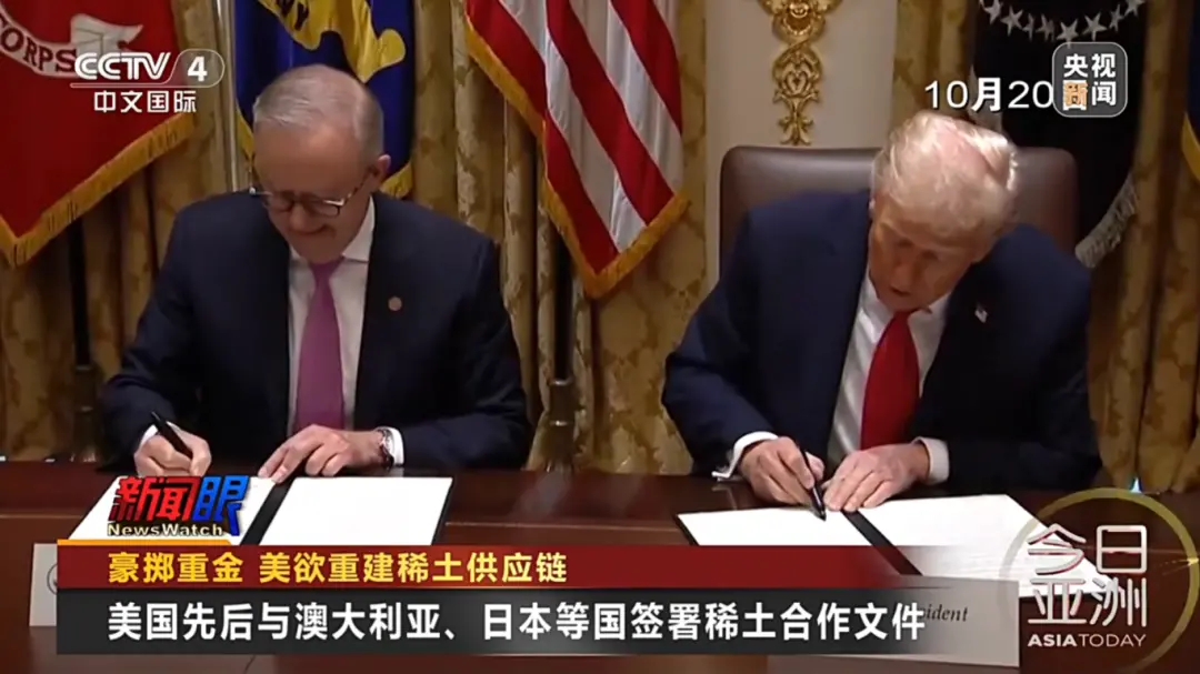 10月20日,美國總統特朗普(专题)在白宮與到訪的澳大利亞總理阿爾巴尼斯簽署稀土合作協議,兩國政府將共同出資超20億美元,開發澳大利亞境內的多個礦產項目。