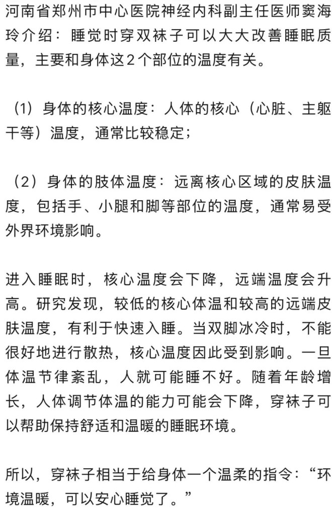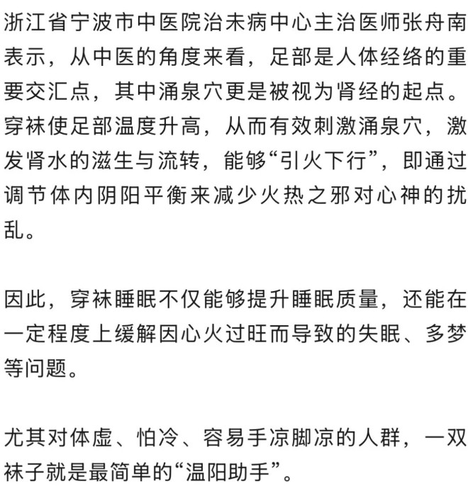有的人感觉穿着袜子睡觉睡眠更好了,但也有人觉得穿着袜子睡不着;不过先别急着站队!有个让人意想不到的结论:穿袜子睡觉不仅能暖脚,更能帮你睡得更好!