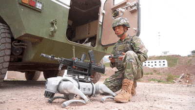 近日,武警西藏总队某支队在青藏高原某野外综合训练场开展防暴装甲车与无人装备协同训练,机器狗扛枪精彩亮相。