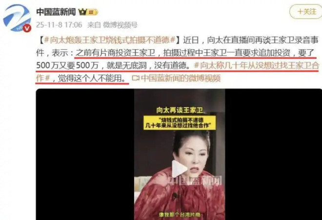 随着录音曝光,更多王家卫的“黑料”又被扒出。 一档台综上,配音女演员吐槽王家卫为追求声音的完美,会在录制过程中一步步越界。