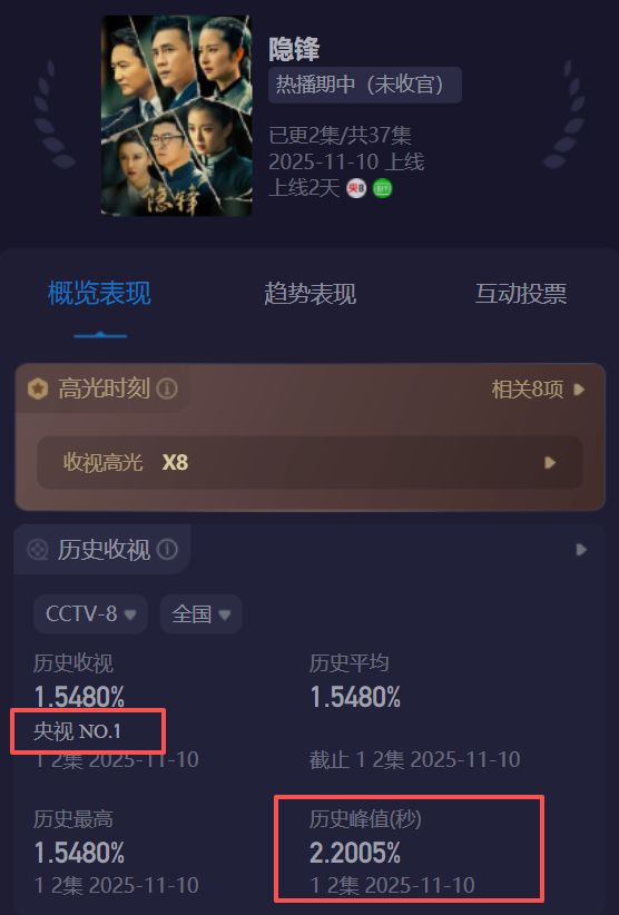 眼下这两部剧迟迟没定档,反倒是另一部大剧率先开播——《隐锋》。