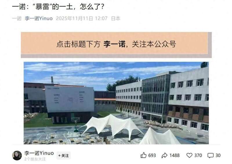 近日,网上有消息称,北京朝阳区一土致知学校“暴雷”。对此,11月11日,该校联合创始人李一诺发文说明具体情况。