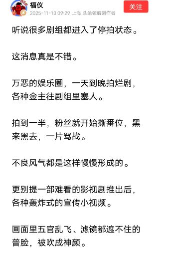 听说很多剧组都进入停拍状态,网友拍手叫好:剧烂水深,粉丝骂战