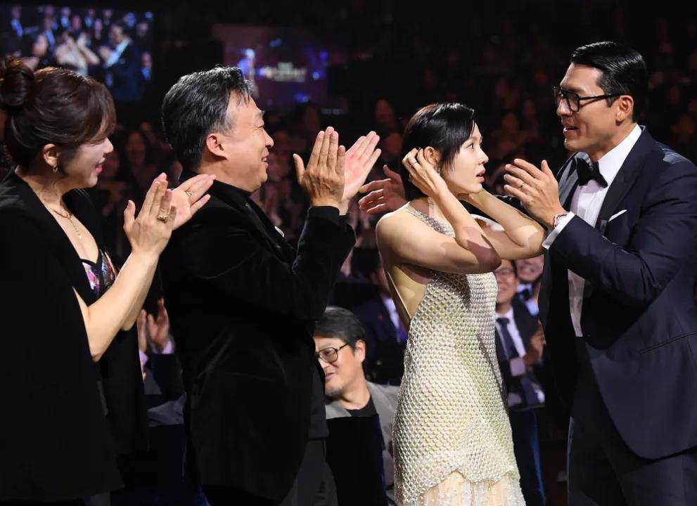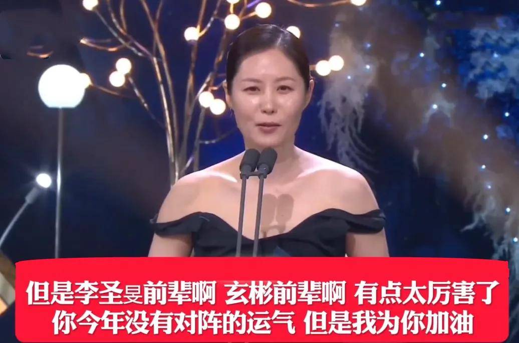 51歲女星文素利站在台上,喊話同時入圍了最佳男主角和男配角獎項的樸正民,感慨他拿了兩個提名還當了表演嘉賓,竟然一個獎都沒有嗎?