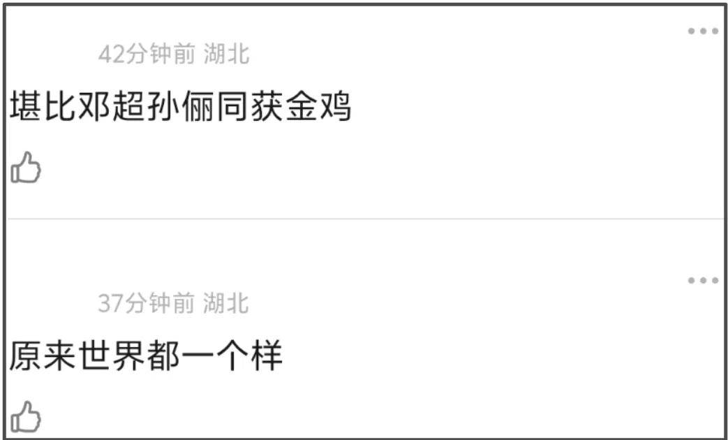 文素利的表現瞬間讓人想起了為好友遲蓬鳴不平的倪萍,當年倪萍站在金雞獎舞台上,直接就來了一句:“(遲蓬)你還傻坐在這了,根本就沒有你(的獎)”。