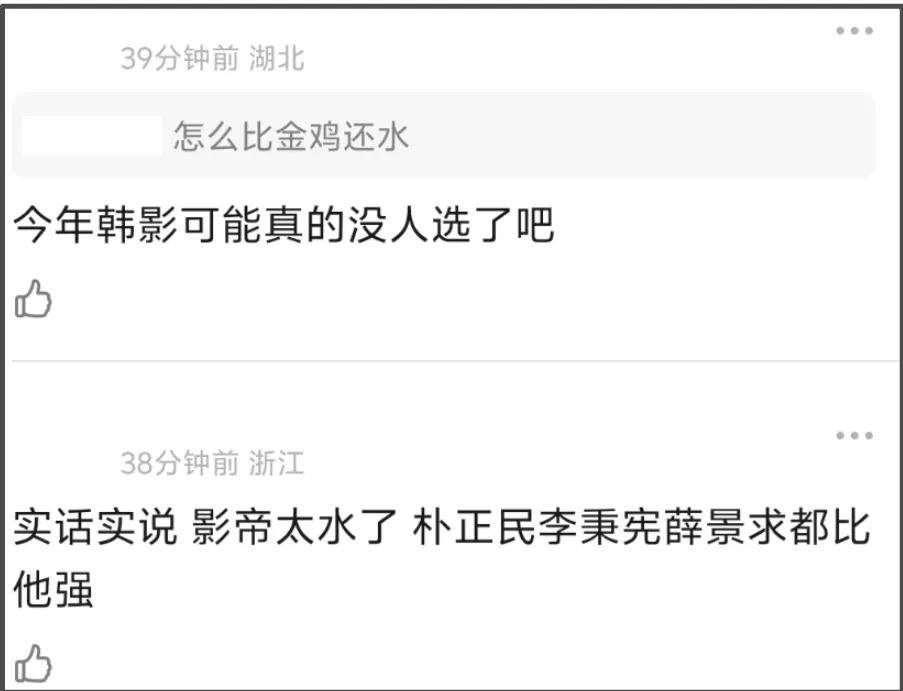 回頭看韓網吐槽,他們不光提到了青龍獎,還點名了大鍾獎,加上一個百想藝術大獎,正是韓國電影三大獎,結果一個比一個水,2023年大鍾獎一度宣告破產,韓國電影完蛋到都湊不齊三大獎了。