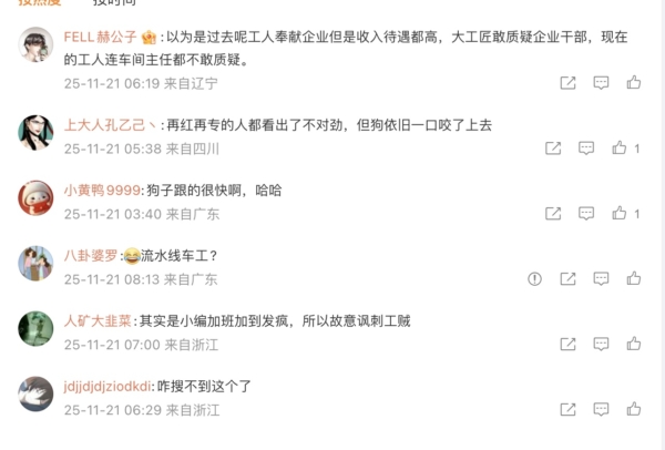 还有网友评论说,“再红再专的人都看出了不对劲,但狗依旧一口咬了上去”“编的,就跟我们高中时写作文,一个调调编,百分百没有真人采访”“其实是小编加班加到发疯,所以故意讽刺工贼”“它们真是疯了”。