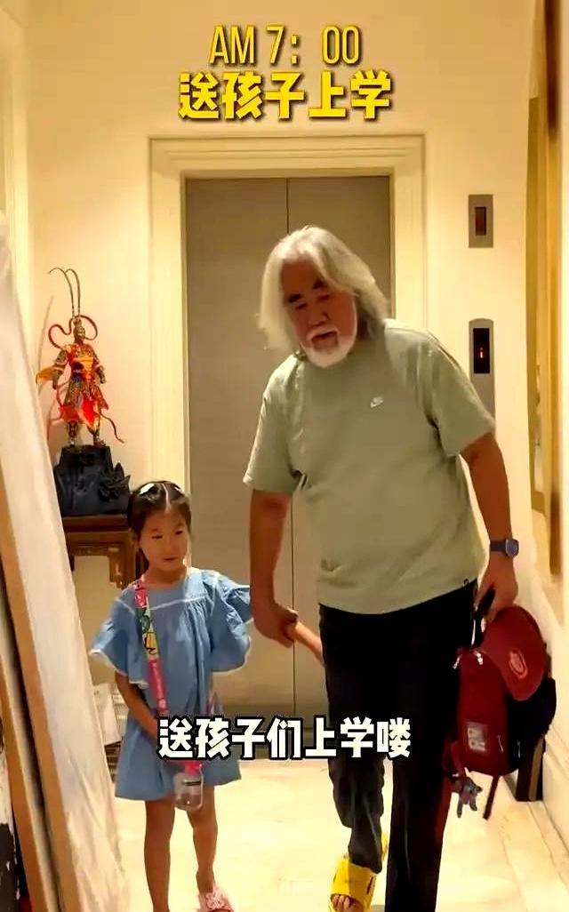 重启的不止外形。过去三年,他一边拍网大,一边做直播,一边陪三个孩子上网课。最小的女儿才三岁,每天清晨五点起床,先抱娃下楼遛弯,再回书房写分镜。剧组年轻人熬一晚就喊垮,他连轴转三天还能抱着娃爬长城。工作人员私下统计,他一天最多能走一万八千步,步速不比小伙子差。