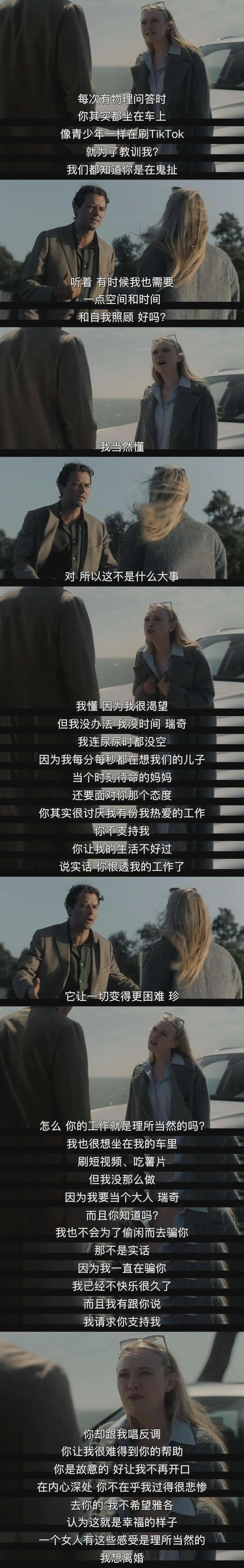 它的好一方面是剧情对女性在职场与家庭之间的艰难处境、女性和男性在婚姻的写实刻画,令我们共情,让我们知道原来不止东亚女性有育儿焦虑,全世界女性都存在这样的困境。