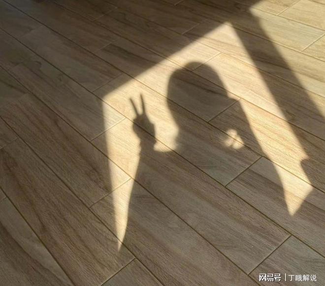 照片拍摄的是她的影子,背对着窗她的影子在木地板上非常明显,窗外的太阳非常刺眼。