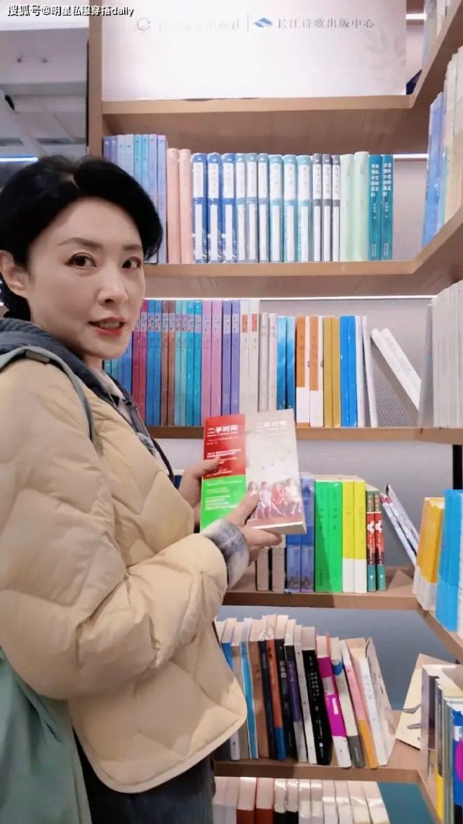 近年來,秋冬疊搭風潮盛行,周濤出現在圖書館,她身穿一件卡其色棉服外套,內搭一件深灰色連帽針織衫氣質優越!