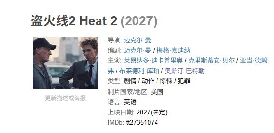 小李:这在很大程度上是一部独立的电影。我们还在筹备中,离正式开拍还有段距离。它向《盗火线》致敬,故事从那里延续。书已经出了,所以我不会泄露什么大秘密。故事设定在未来,也设定在过去,以此展开我认为是我这辈子最伟大的犯罪黑色电影的关键时刻。