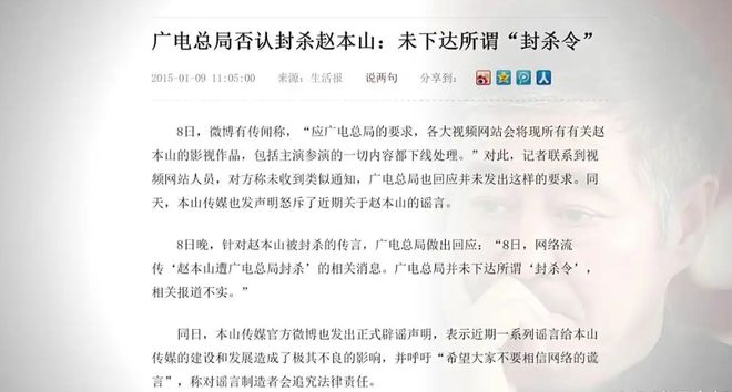 離譜的是後來還傳出了趙本山被廣電總局封殺的傳言。