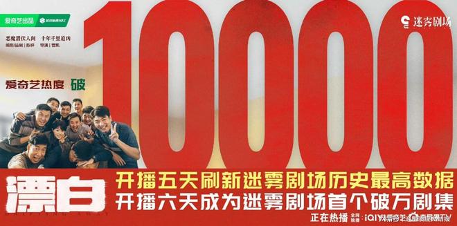 开播第6天,爱奇艺站内热度破10000,云合市场占有率17.9%,热播期集均播放量6436万,刷新迷雾剧场历史最高数据。抖音相关话题播放量超75亿。