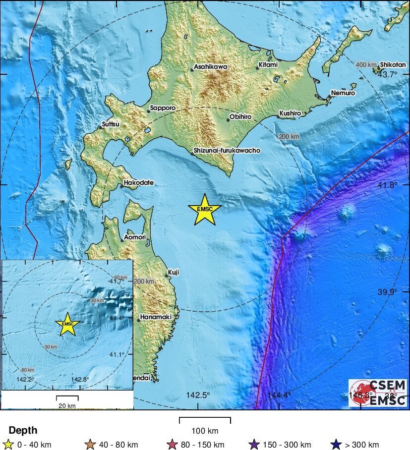 地震发生在当地时间周一晚上11点15分,震中位于青森外海约50英里处。