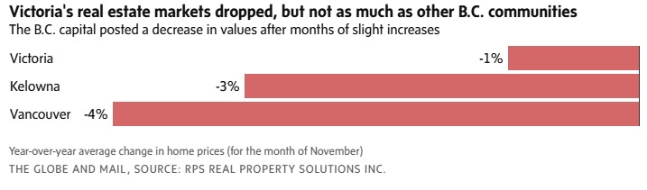不过,维多利亚的表现仍好于BC省另一主要城市基洛纳(Kelowna),后者 11 月房价同比下降 3%。