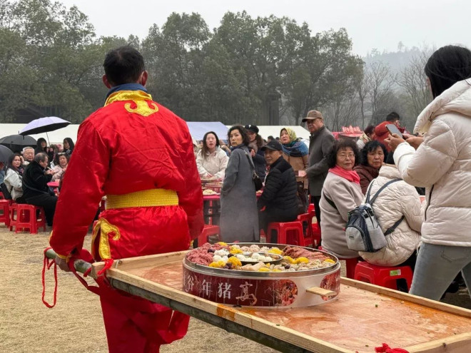 景區千人年豬宴場場爆滿:40元19個菜 現宰黑豬