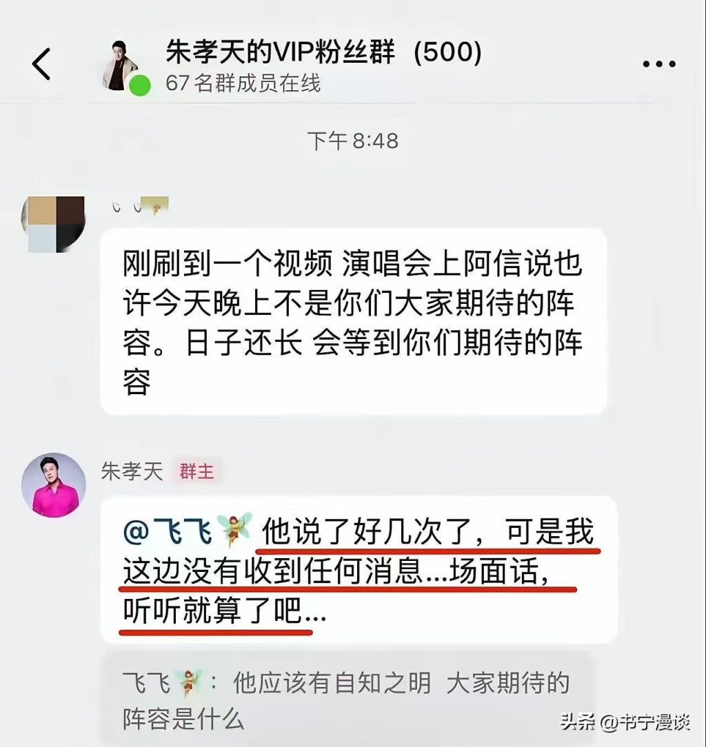 不过朱孝天这几天也没闲着,人家在台上演唱,他在台下“说小话”,各种内涵阿信和相信娱乐,又是甩锅主办方,又是阴阳阿信丑,整个人大破防。