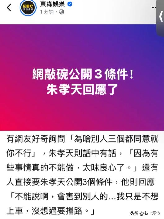 随即又有网友扒出了疑似朱孝天当时和相信音乐没谈妥的其中一个条件,看了更让人恼火,才知道两面三刀的到底是谁?