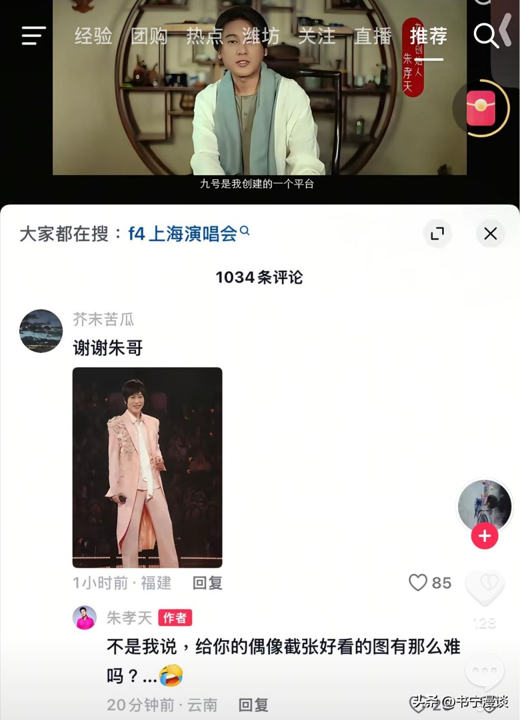 虽然朱孝天一直都在给F4的演唱会制造麻烦,但F3和阿信在演唱会上也没说过他一句不好的话,甚至昨天阿信还在摔倒后忍着伤痛感谢了朱孝天,他用了“暂时未能赴约”六个字,给足了朱孝天体面。