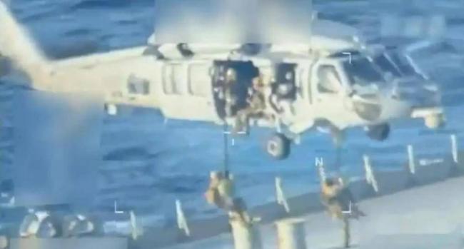 可美军不管这些。直升机直接盘旋在油轮上空,武装人员顺着绳索滑下来,一脚踹开甲板门就闯了进去。没有联合国授权,没有国际法庭扣押令,甚至连一句像样的理由都没有,就把船员控制、通讯切断,硬生生把船劫走了。