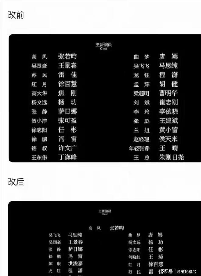 不过之后这个片尾排名又改了,成了马思纯在唐嫣的前边。