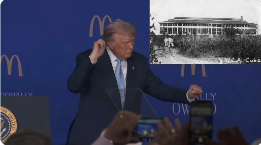 而是他在台上模仿举重和跳 Y.M.C.A. 的那段“总统级尬舞”。