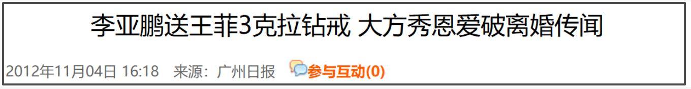 李亞鵬還在台上表示,這是他們結婚7年來,他首次送王菲戒指。媒體當年用的標題也都是“破婚變之說”,可見當時婚變傳聞要多大。